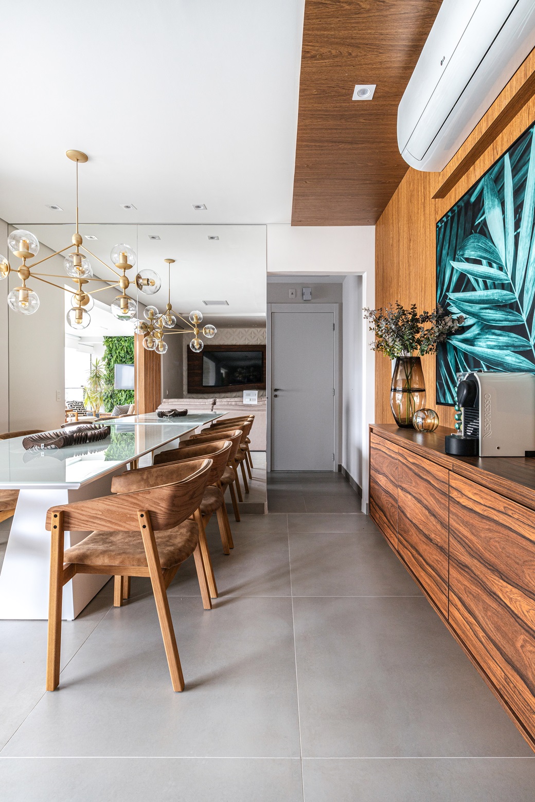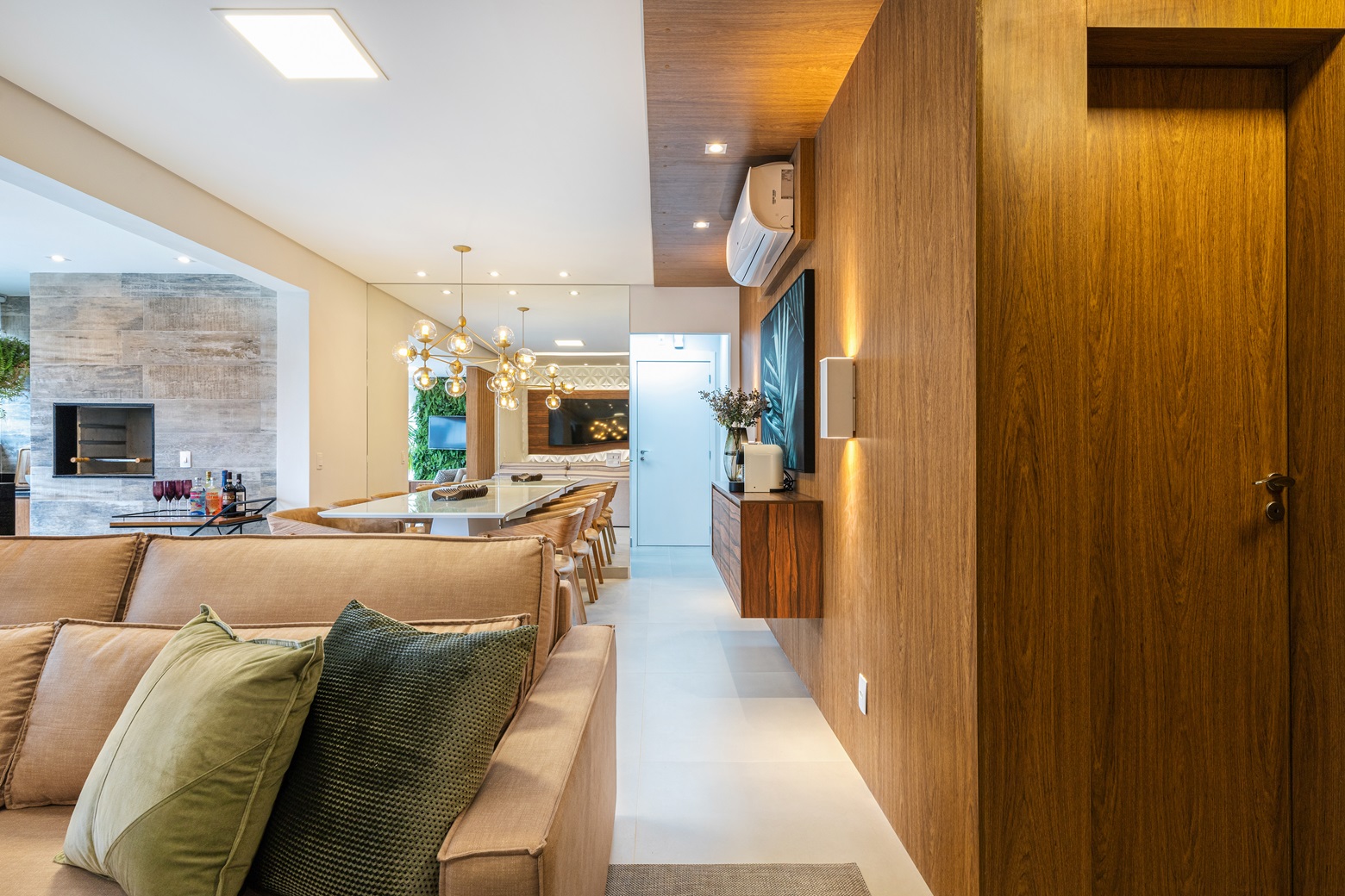 • Marcenaria personalizada: Conecta os ambientes e adiciona aconchego.