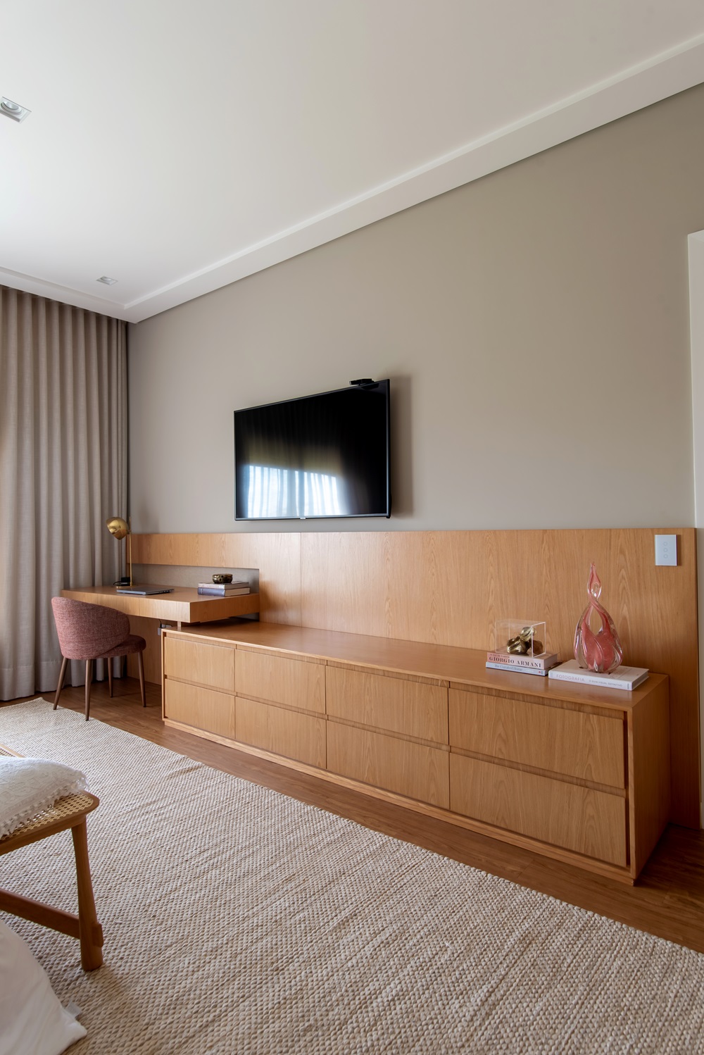 - Toques pessoais: Decore com elementos que reflitam sua personalidade e te inspirem, como quadros, fotos, livros ou objetos decorativos.