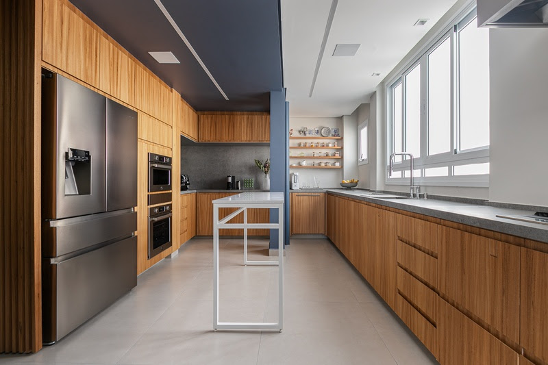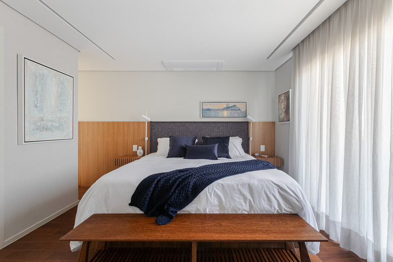 Idealizado para ser o lar da própria arquiteta e seu marido, o apartamento é um convite à contemplação. A vista panorâmica para o parque, a iluminação natural abundante e a conexão com a natureza são os protagonistas do projeto. A paleta de cores neutra, com toques de azul e verde, cria um ambiente sofisticado e acolhedor, perfeito para relaxar e receber amigos.