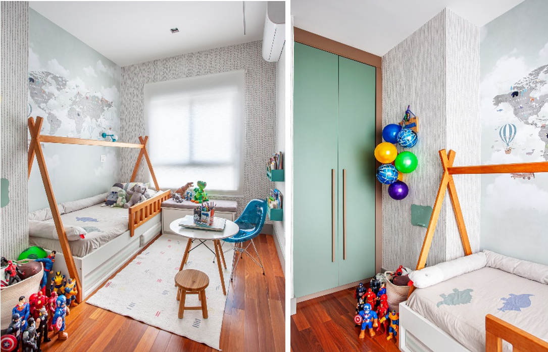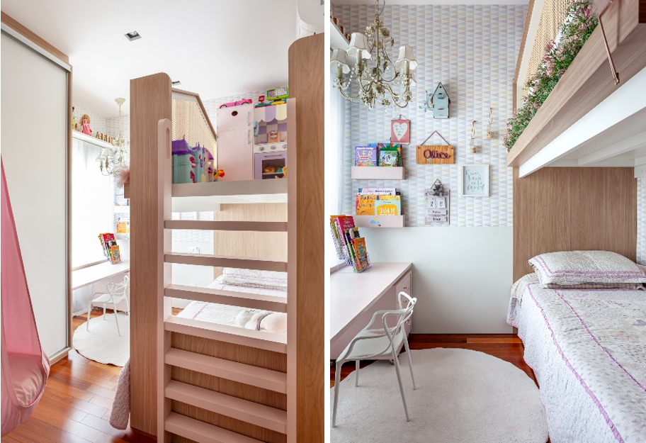 • Quarto das crianças: A brinquedoteca suspensa, com estrutura reforçada e proteção, garante a segurança e a diversão da pequena Alice.