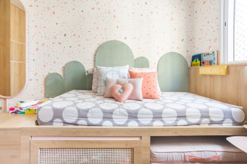No quarto assinado pela LL Arquitetura, detalhes na cor Peach Fuzz tornam a decoração feminina e atemporal. Dá para acompanhar as diferentes fases da jovem moradora. Fotos: Kelly Queiroz